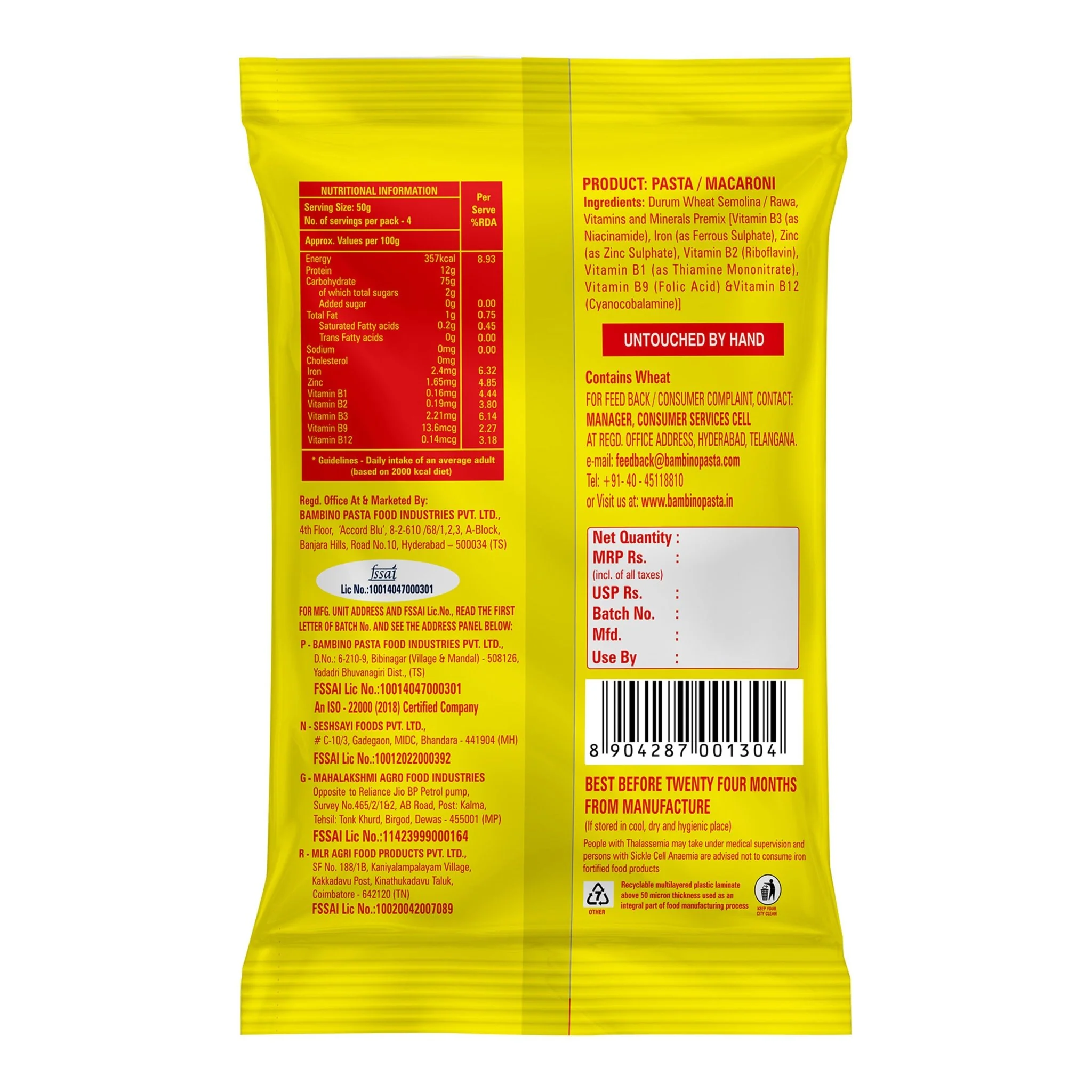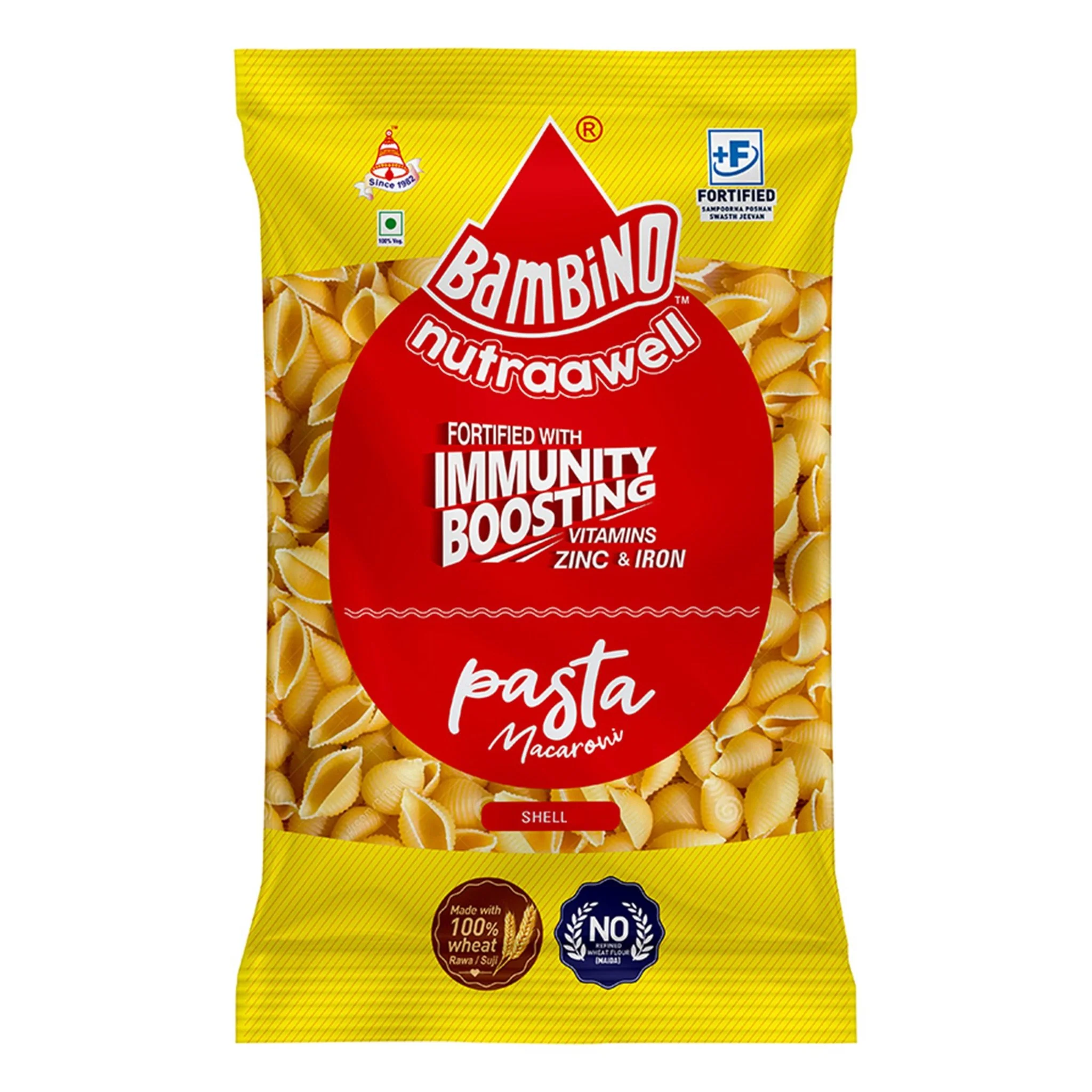 Bambino Nutraawell Pasta Macaroni (Shell) – a healthful delight that combines fine dining with nutritional benefits. Like its Penne counterpart, this Shell variant is fortified with vitamins, zinc, and iron, making every serving a step towards better immunity. Crafted from pure durum wheat semolina and completely free of Maida, it cooks to perfection in a brief 10-11 minutes. It’s the epitome of convenient cooking without sacrificing taste or health benefits.