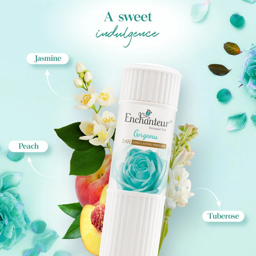 Enchanteur gorgeoustalc is a fine talcum powder that leaves your skin feeling smooth. Perfumed with french fragrances, that adds romance to your day. It contains an unforgettable fragrance of tuberose, gardenia and jasmine with a sensual blend of musk and vanilla.