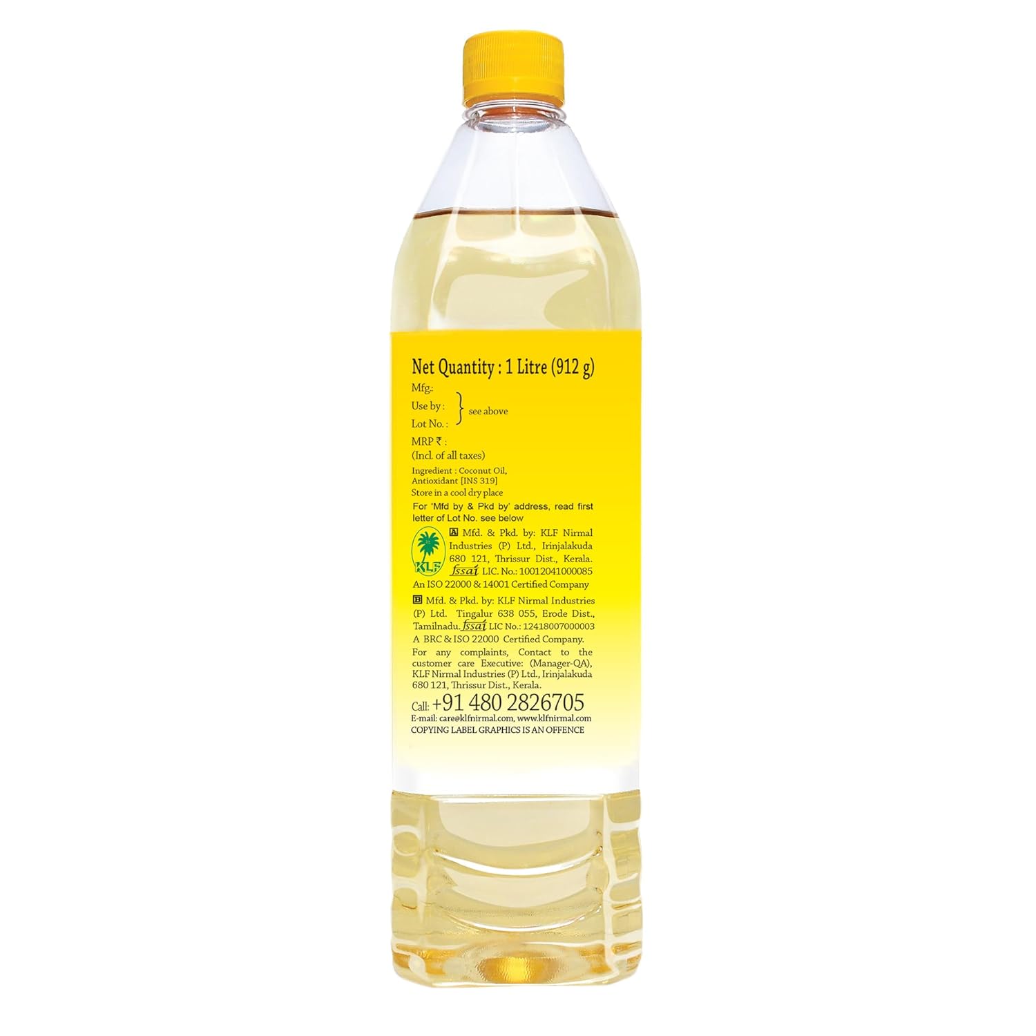 KLF coconad 100 percent pure coconut oil from Kerala coconuts. KLF coconad is made from copra, it has sweet aroma of roasted copra. Ideal for cooking Kerala or costal cuisines. Sold all over India and abroad. KLF family which is based out of Kerala has been in the field of coconut oil milling for more than 75 years.