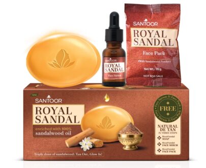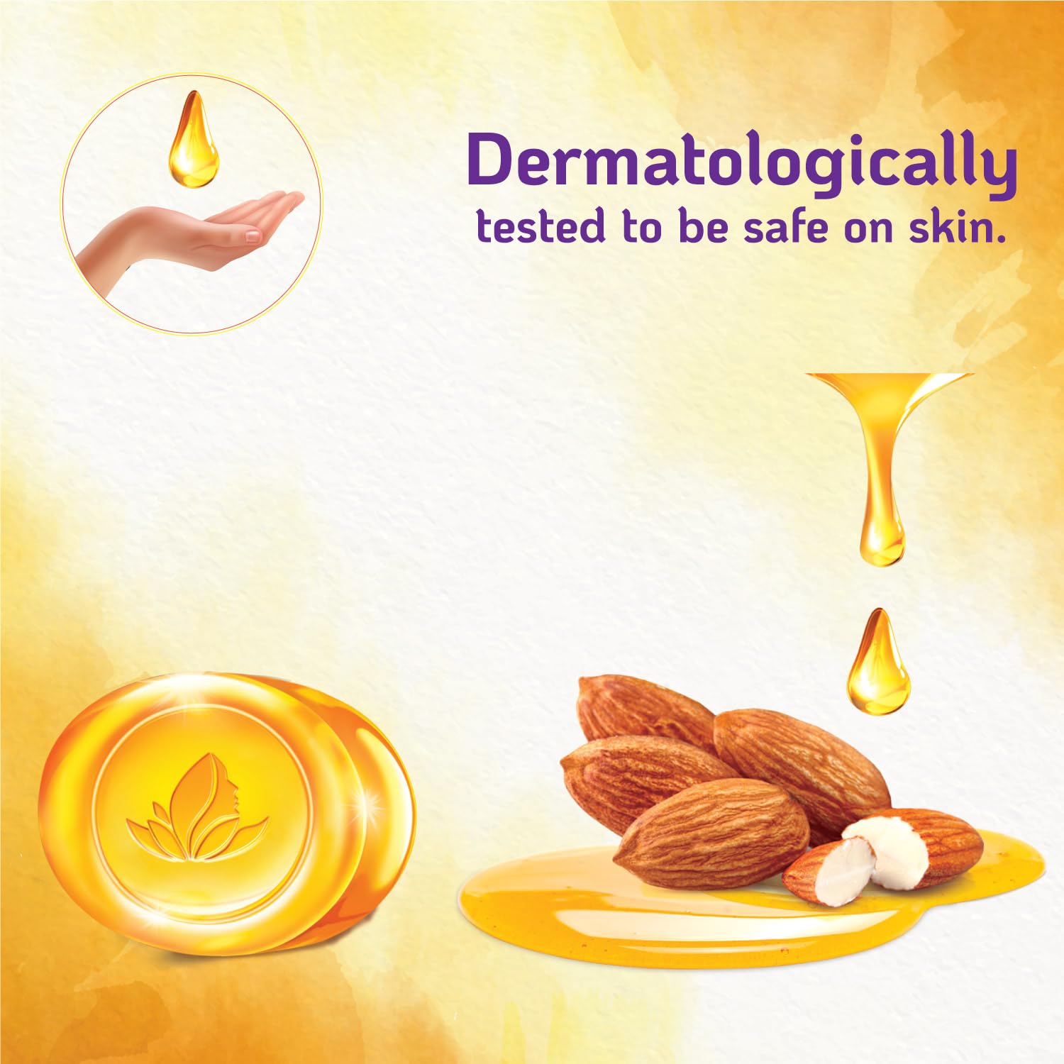 Elevate your bathing ritual with Santoor PureGlo Glycerine Bath Soap infused with the goodness of glycerine and almond oil. Glycerine, known for its moisturizing properties, helps to replenish and retain the natural moisture of your skin, ensuring that it stays hydrated and supple throughout the day. Almond oil, rich in vitamins and antioxidants, nourishes your skin deeply, leaving it soft, smooth, and visibly radiant.